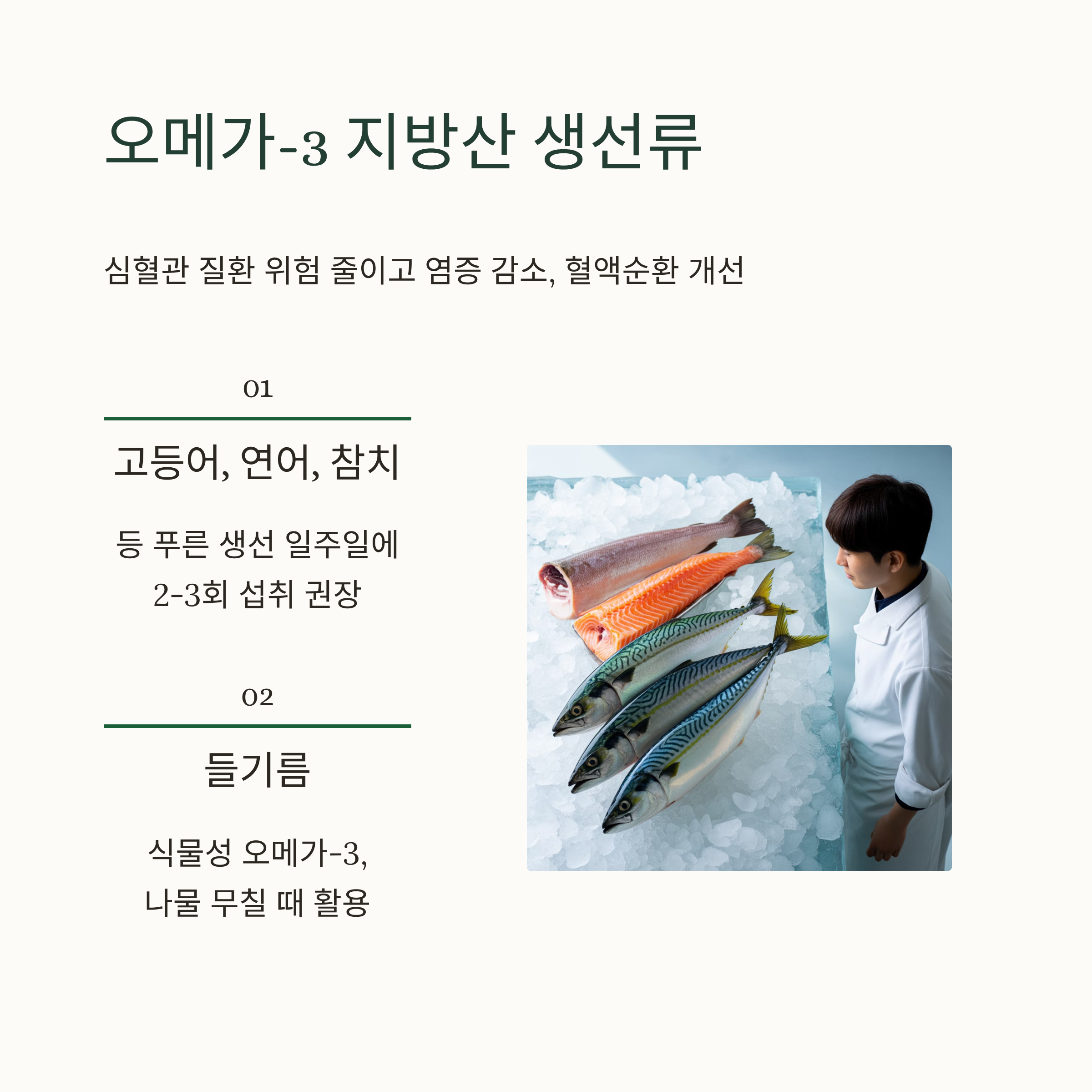 4. 오메가-3 지방산 (생선류) 🐟