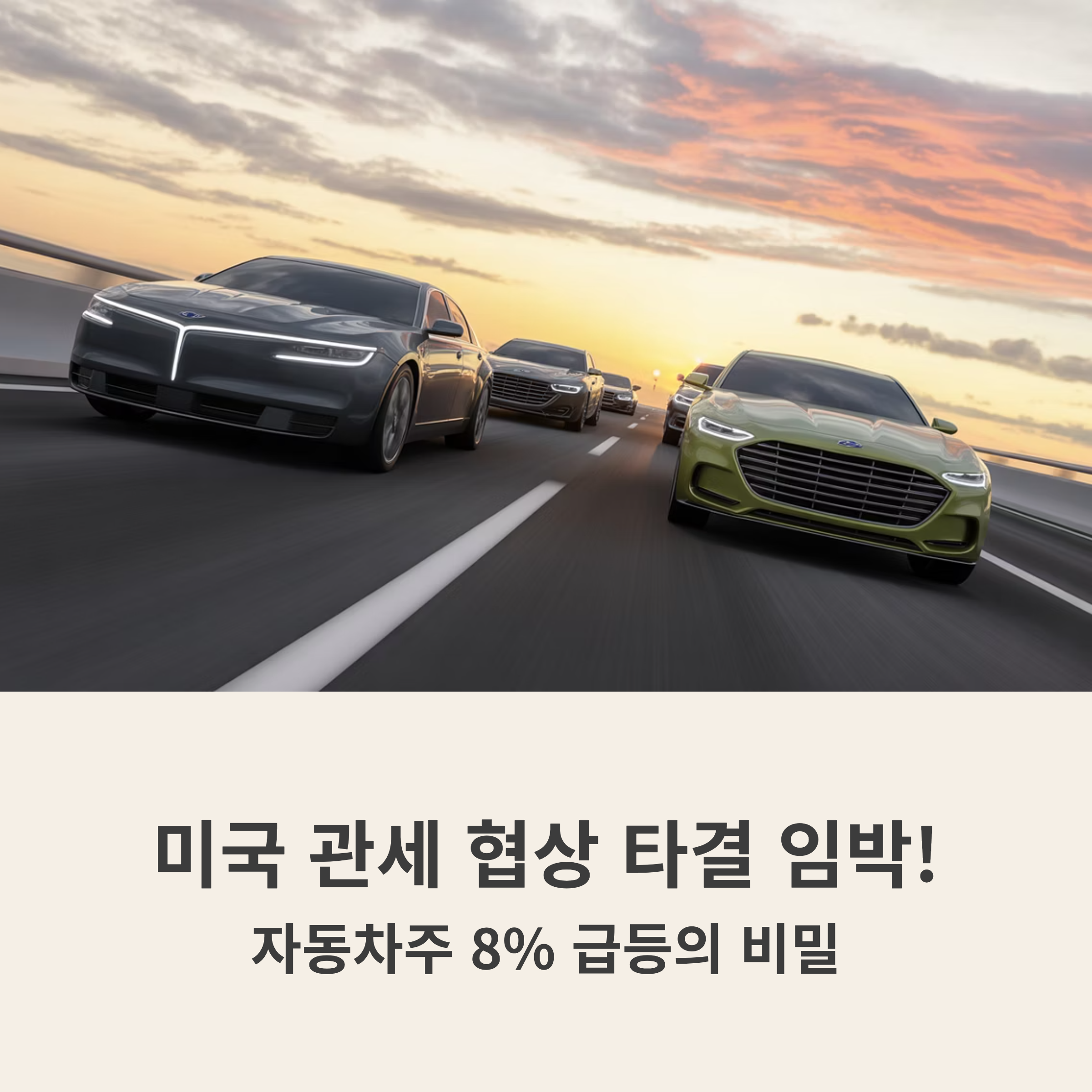 [본문 1: 관세 악재 해소가 이끈 대규모 수급] 최근 자동차주는 미국과의 관세 협상 지연으로 유럽/일본 경쟁사 대비 10%p 높은 관세 부담을 안고 있어 가격 경쟁력에서 밀리는 악재에 시달려 왔습니다. 그러나 미국 재무부 장관이 "한국과의 관세 협상을 10일 내로 마무리할 수 있을 것"이라고 전망하면서, 관세 악재 해소에 대한 기대감이 폭발적으로 주가에 반영되었습니다.
