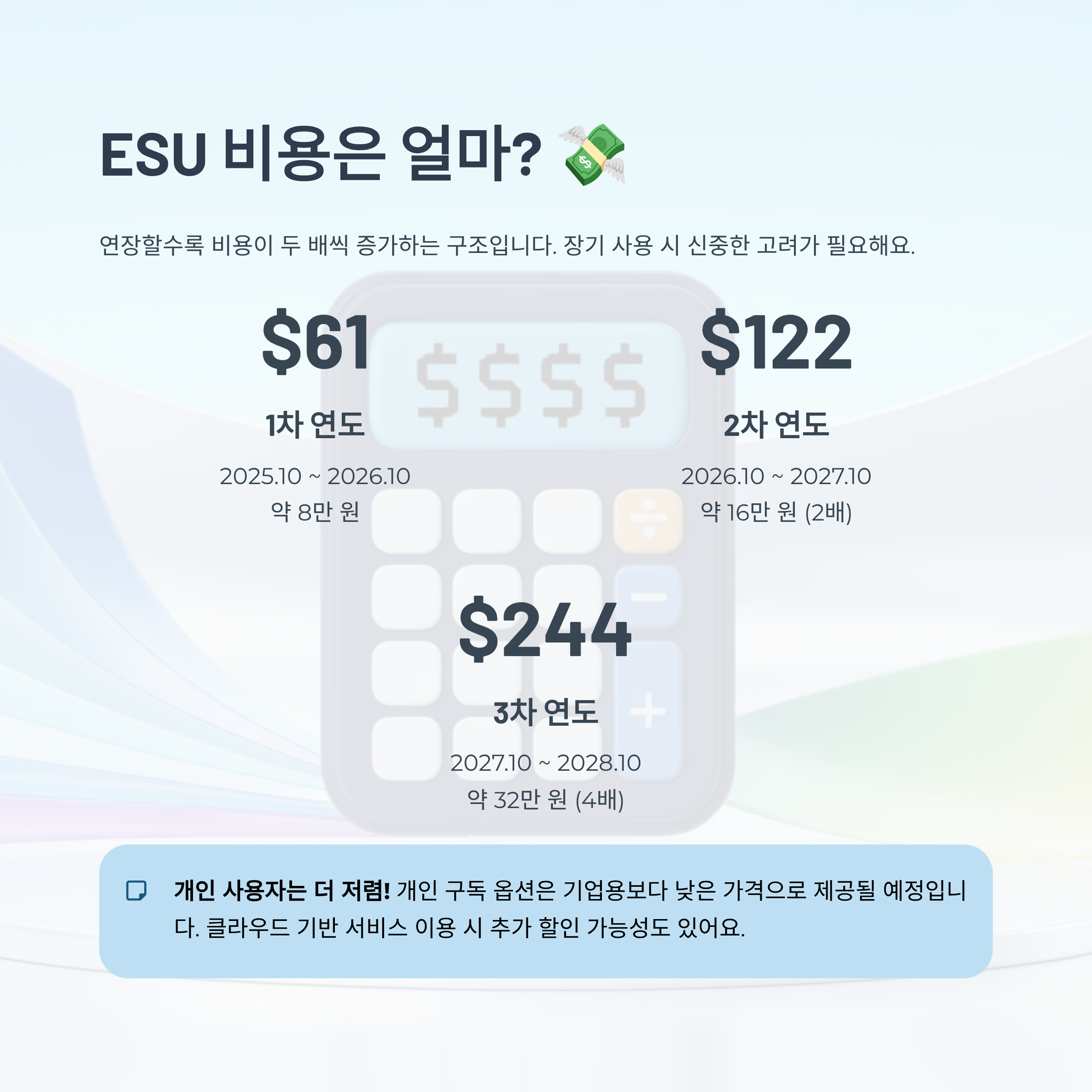 개인 사용자 ESU 비용은 더 저렴합니다 🎁