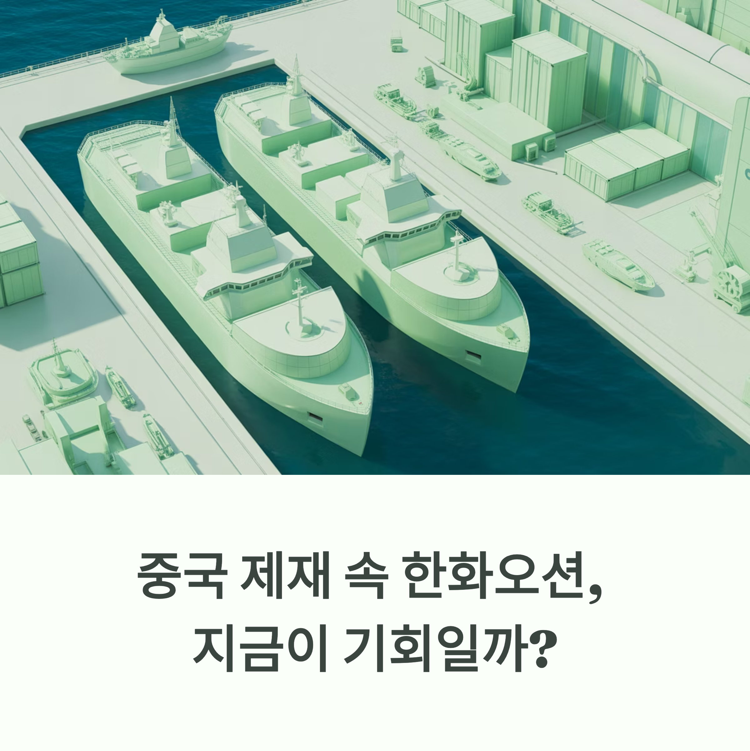 "정리하자면, 한화오션은 '미중 갈등이라는 거대한 파도를 타고 성장의 기회를 잡을 수 있지만, 제재 확전이라는 변수는 주의 깊게 살펴봐야 하는 기업'이라고 할 수 있겠네요."