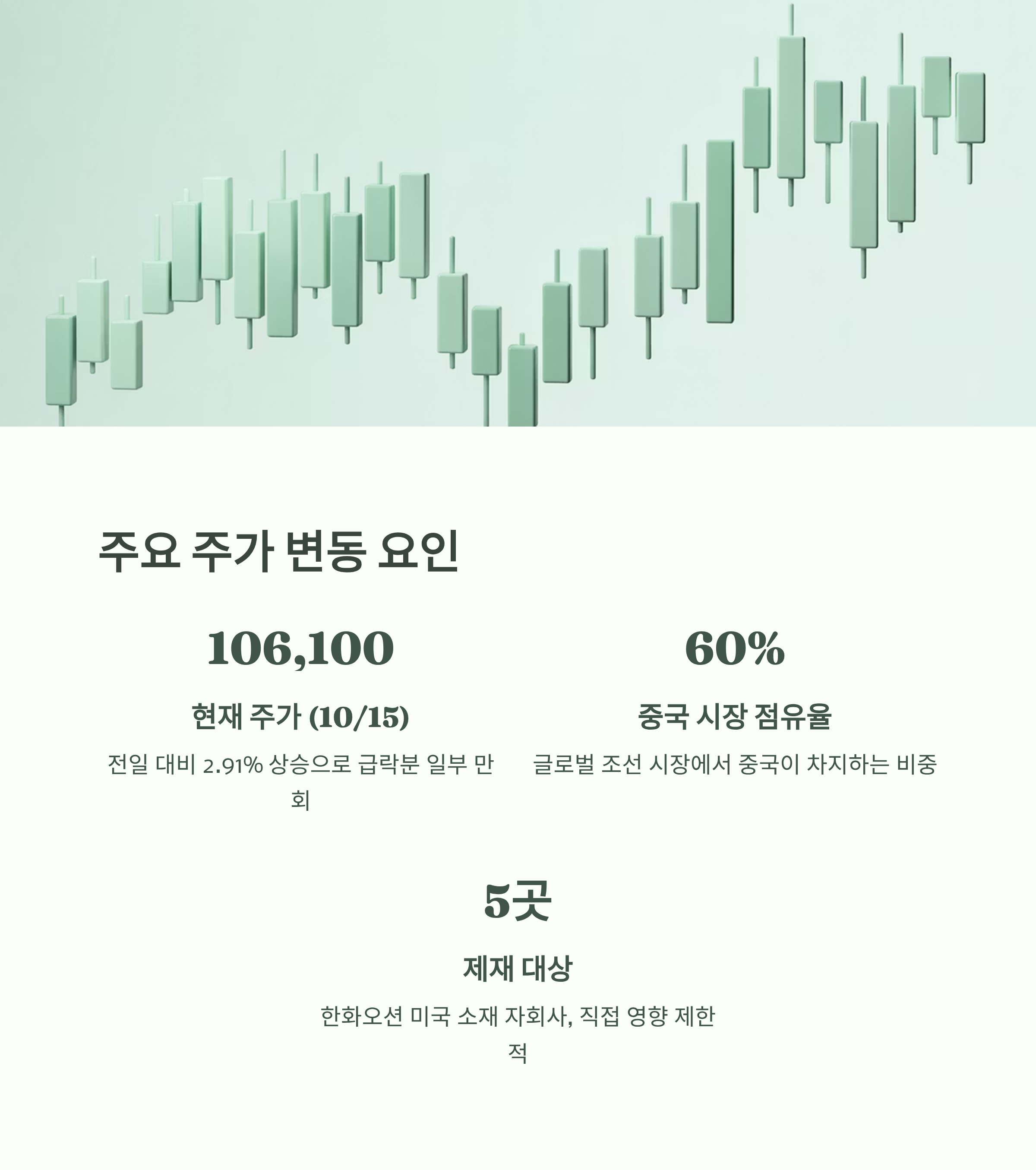 - 💰 제한적인 직접 영향: 중국의 제재 조치는 미국 법인에 국한되며, 현재 한화오션의 미국 내 생산 규모 및 중국 기업과의 연관성이 미미하여 실질적인 타격은 제한적일 것이라는 분석입니다.