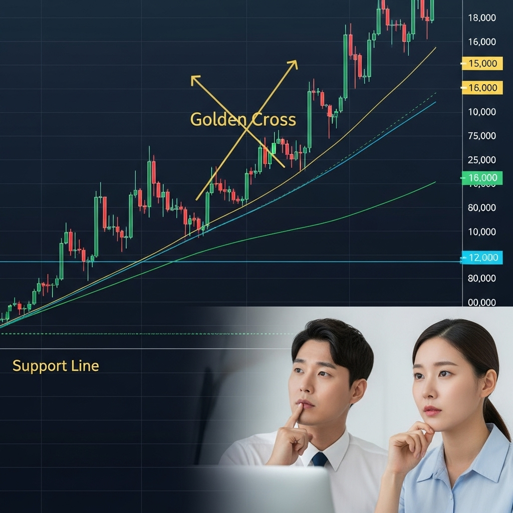 "자, 이제 가장 궁금해하실 차트를 볼 시간입니다. 다행히도 희망적인 신호들이 몇 가지 보이네요. 첫째, 상장 이후 꾸준히 우상향 추세를 만들고 있으며, 20일 이동평균선이 60일선을 뚫고 올라가는 '골든크로스'가 발생한 이후 정배열을 유지하고 있습니다. 최근 단기 급등에 따른 피로감으로 살짝 조정을 받았지만, 20일선 부근에서 강한 지지를 받고 다시 반등하려는 모습입니다."
