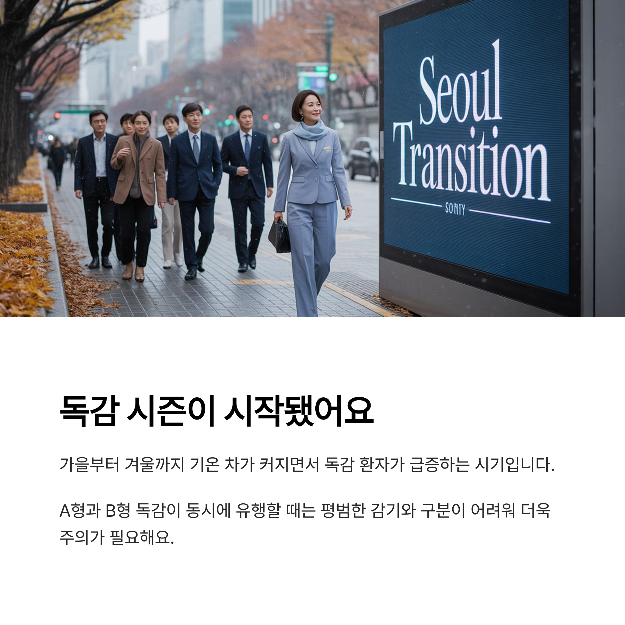가을부터 겨울까지, 아침저녁으로 기온 차가 커지면서 독감 환자도 부쩍 늘어나는 시기입니다. 특히 'A형 독감'과 'B형 독감'이 동시에 유행할 때는 평범한 감기와 구분이 쉽지 않아 더 주의가 필요한데요. 이 글에서는 A형과 B형 독감의 차이, 주요 증상, 그리고 초기에 빠르게 대처할 수 있는 48시간 골든타임의 중요성에 대해 정리해드립니다.